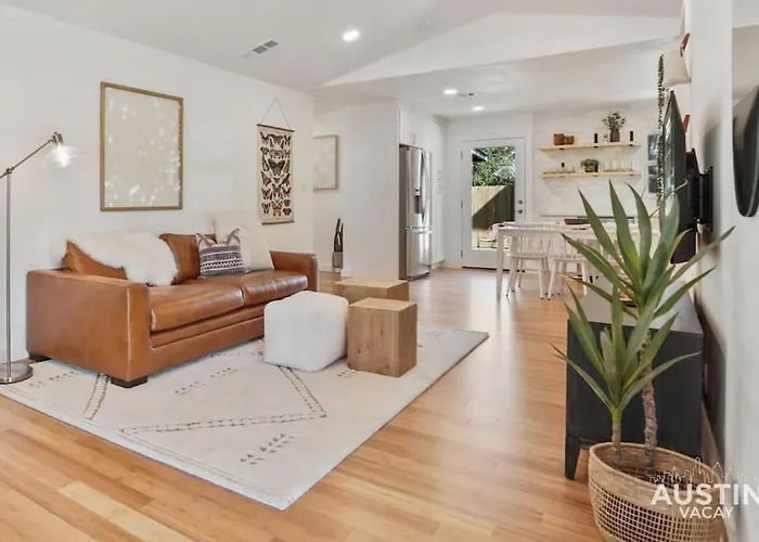 La Trendy Remodeled Home By Soco W Nice Outdoor Space, de 143 m^2, se encuentra a apenas 5 minutos andando del Green Pastures, mientras que el Museo Bullock de Historia del Estado de Texas se encuentra aproximadamente a 10 minutos en coche. En cada habitación de la villa se incluye servicio de tetera/cafetera, internet de alta velocidad y TV con múltiples canales.